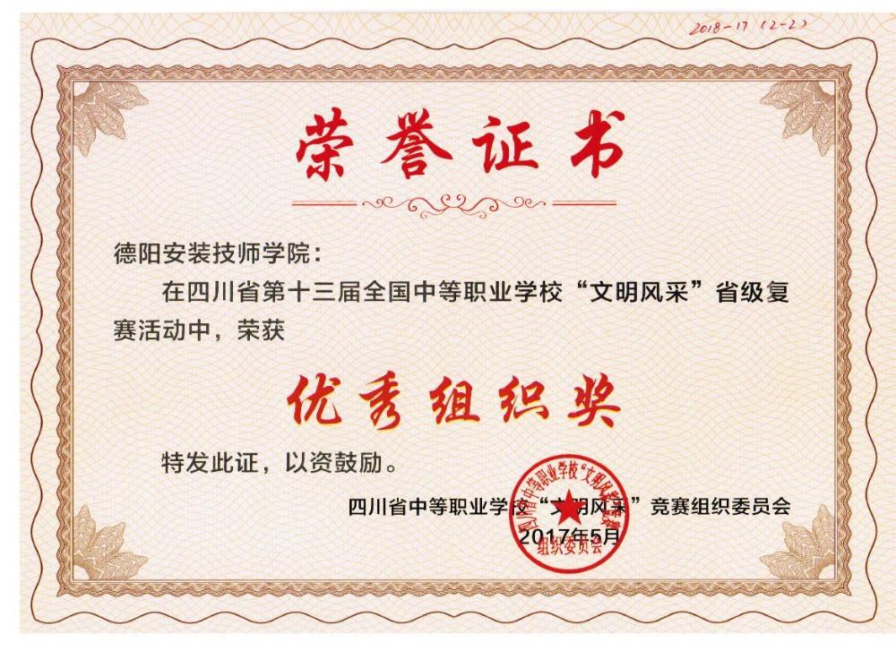四川省第十三届全国中等职业学校“文明风采”优秀组织奖
