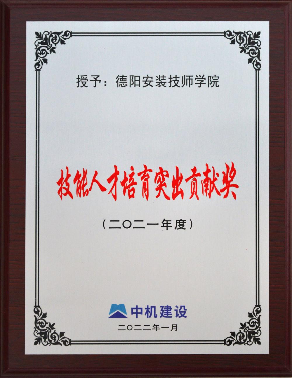 2021年度技能人才培育突出贡献奖