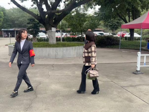 活动当天,党员和团员志愿者们早早来到现场,按照事先的分工迅速投入到各自的工作中。在学院大门处,迎接小组以热情的笑容和周到的服务迎接每一位到校观礼的家长,为他们指引道路,解答疑问。