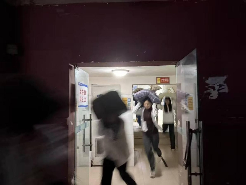 当日晚21:05,地震预警声响起,演练正式拉开帷幕,师生们迅速做出反应,依照预案有序撤离宿舍。此次演练采用“无预演”的方式进行,全体学生反应敏捷、撤离有序,在黄金时间内安全抵达指定集合点,整个过程有条不紊,达到了预期效果。