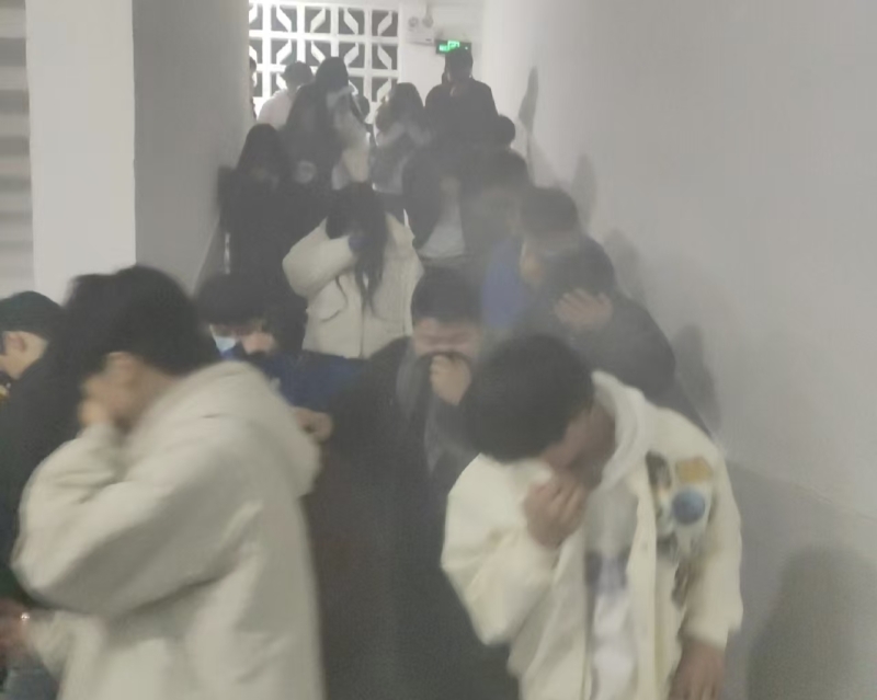 演练开始前,工作人员提前就位,周密部署疏散路线与安全节点。随着警报声响起,全体参演学生在引导员的指挥下,迅速捂住口鼻、弯腰低姿,按照预定疏散路线有序撤离至安全区域,整个过程仅用时数分钟,充分展现了良好的组织纪律性和应急反应能力。
