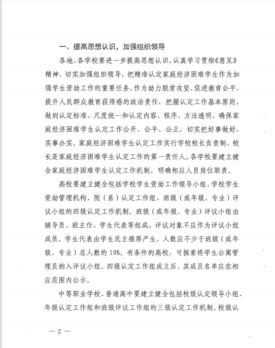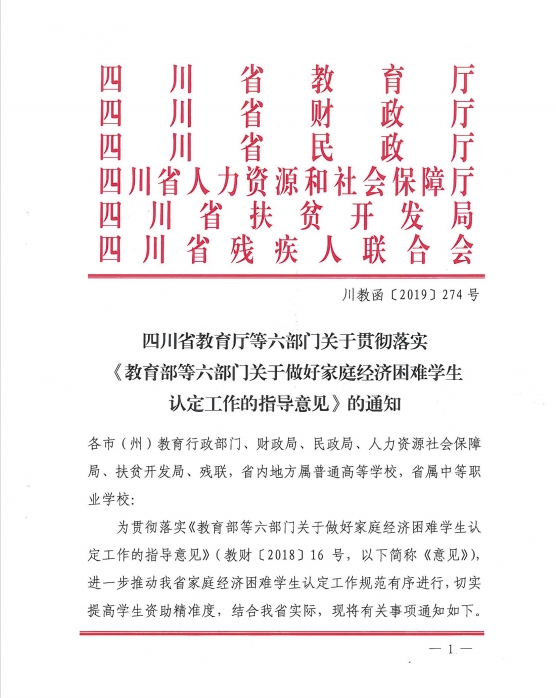 关于贯彻落实《教育部等六部门关于做好家庭经济困难学生认定工作的指导意见》的通知